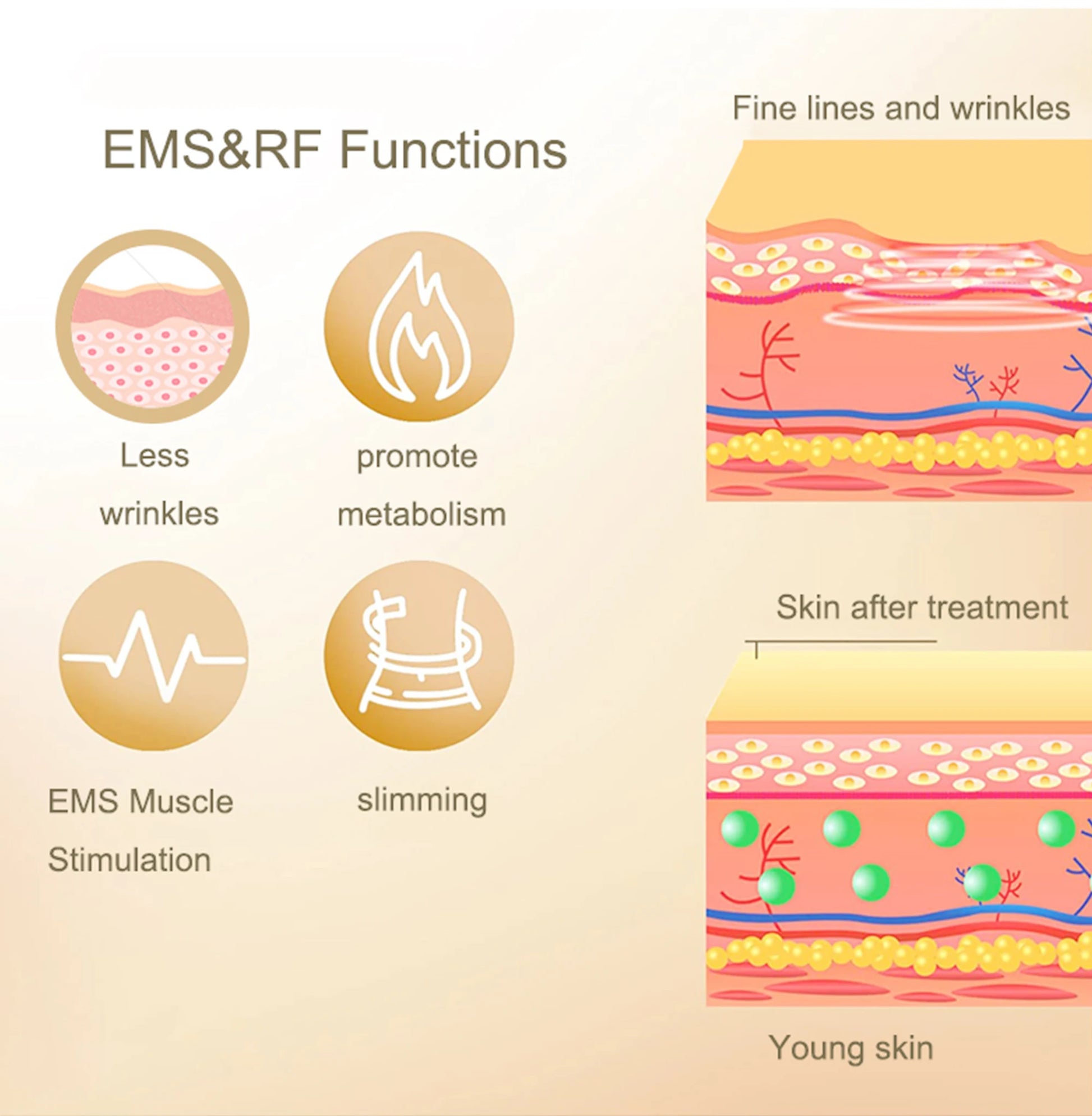 Working Principle: LED,RF,WARM,Ultrasound Wave,vibration massage