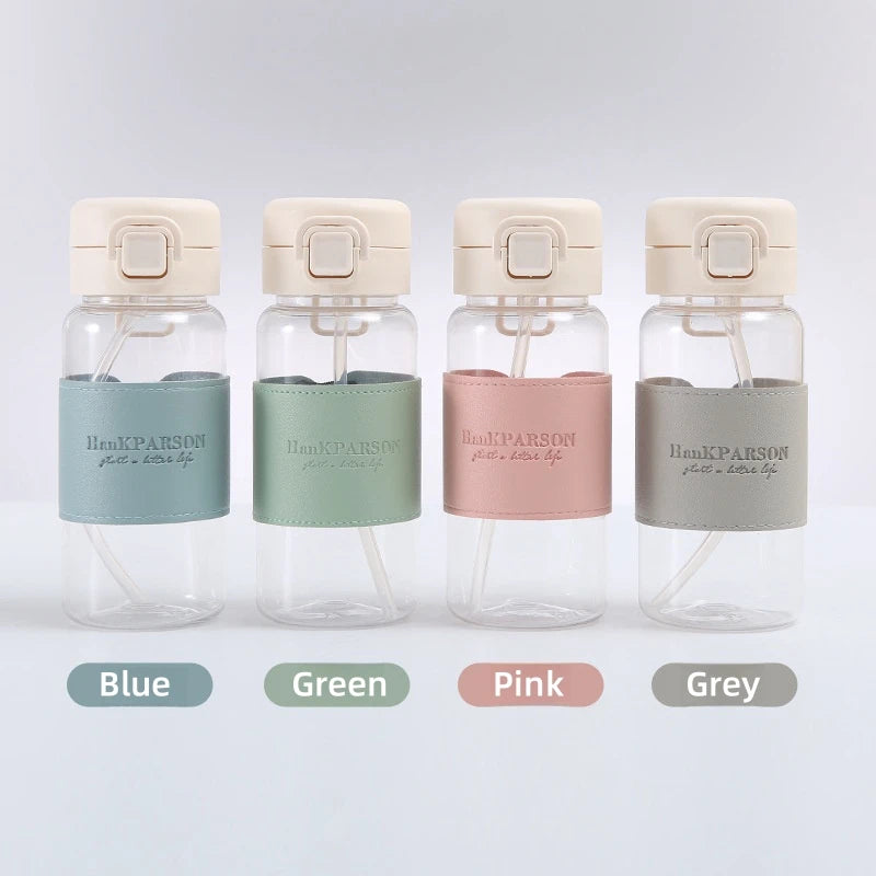500ml Portable Cute Water Bottle with Straw Pop-Up Cover Leak-Proof Drinkware for School Kids Plastic Drinking Bottle
