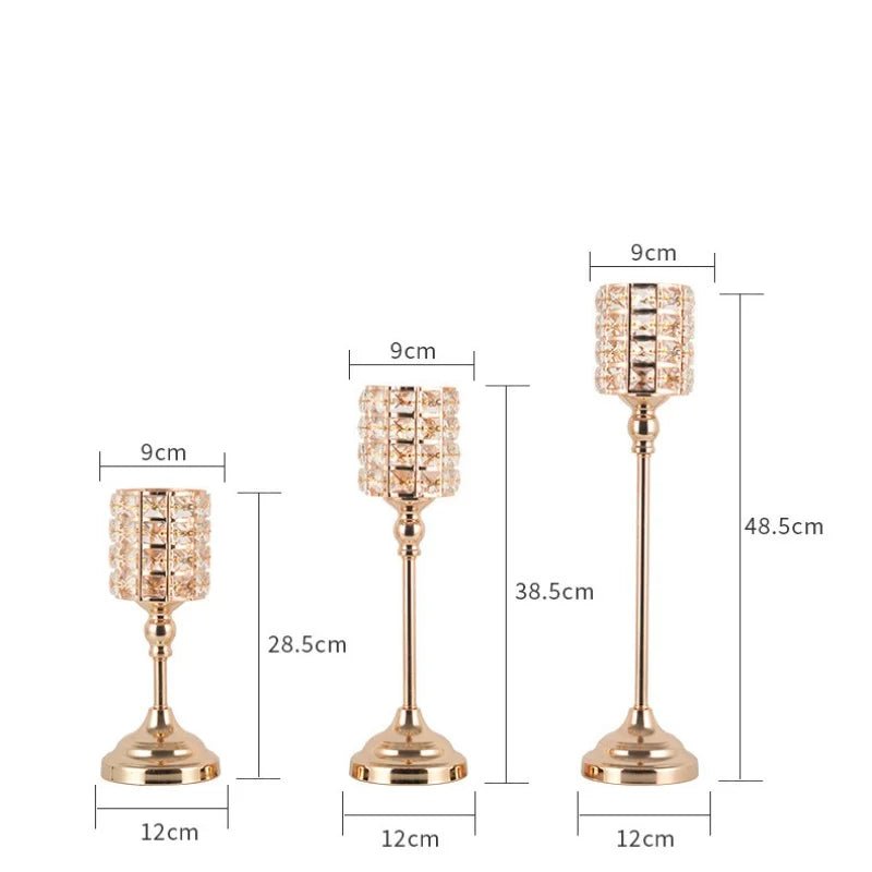Crystal Glass Candle Holders Luxury Retro Metal Candlesticks, Wedding Party, Christmas Holiday, Desktop Home Decoration, 3 Sizes