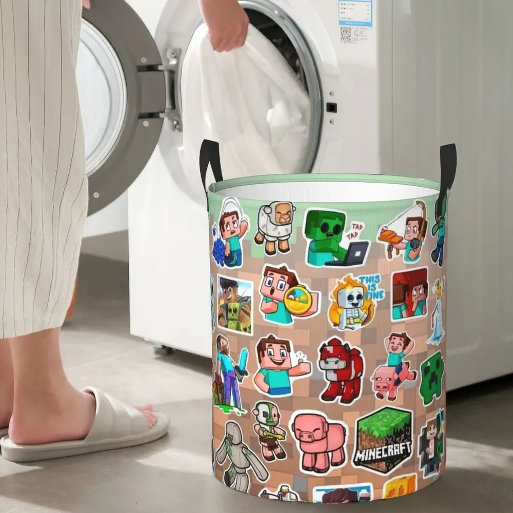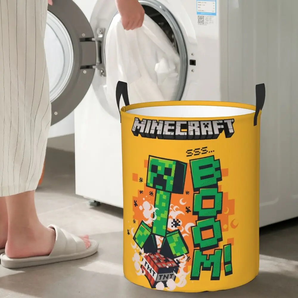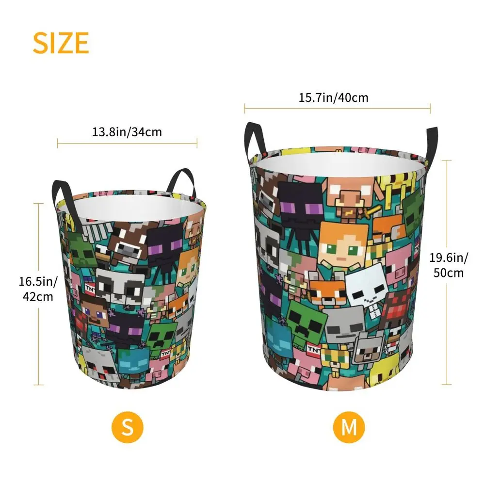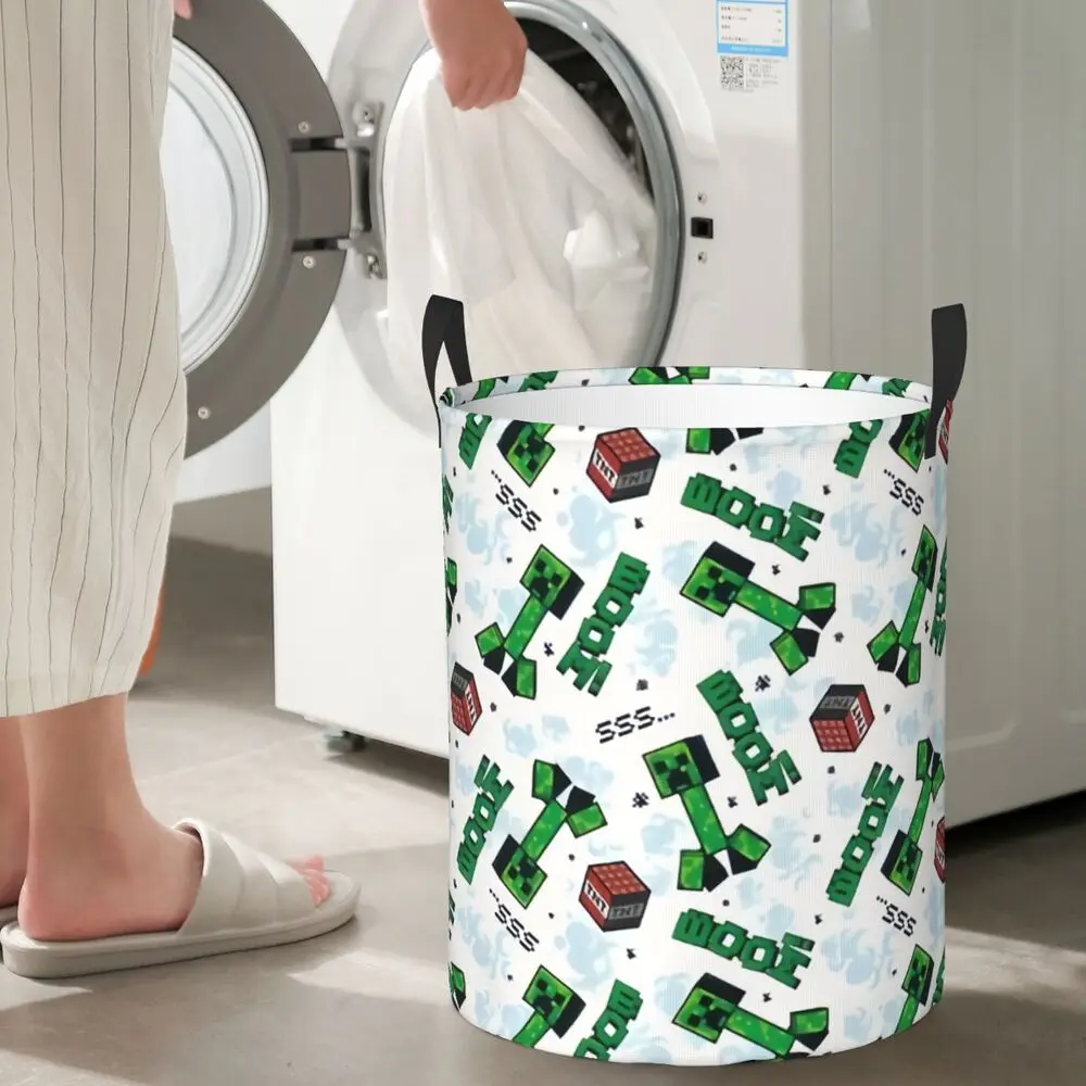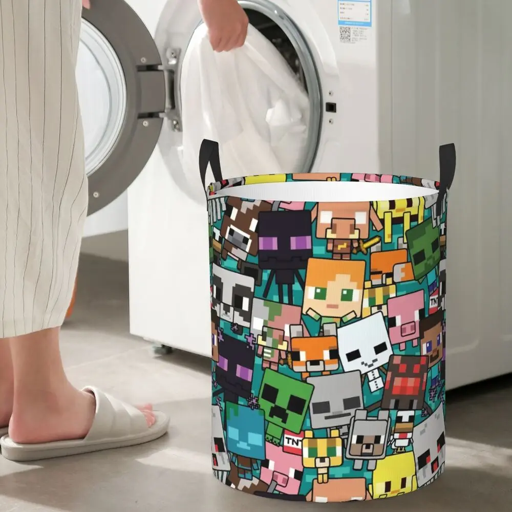 Custom Anime Game Mine C-Crafts Cartoon Laundry Hamper Large Clothes Storage Basket Toy Bin Organizer for Kids