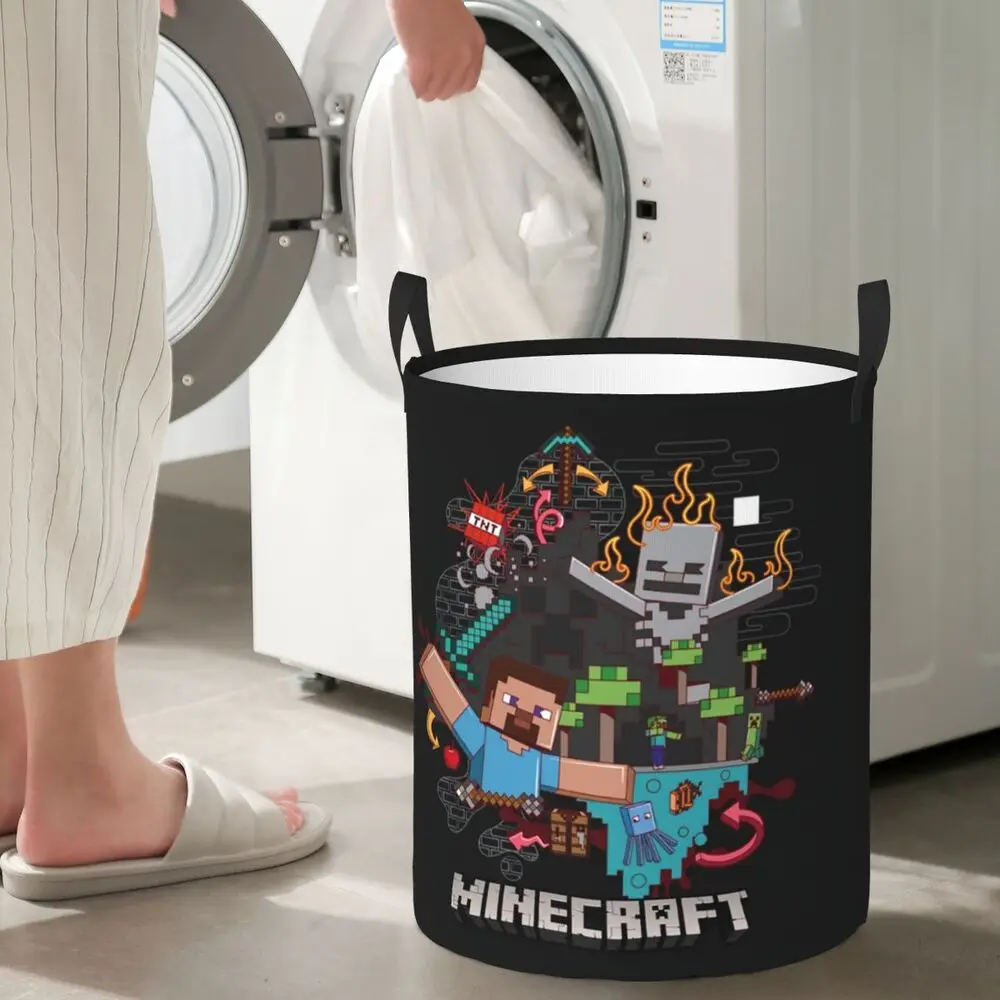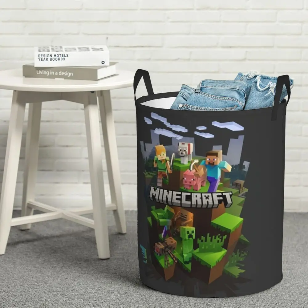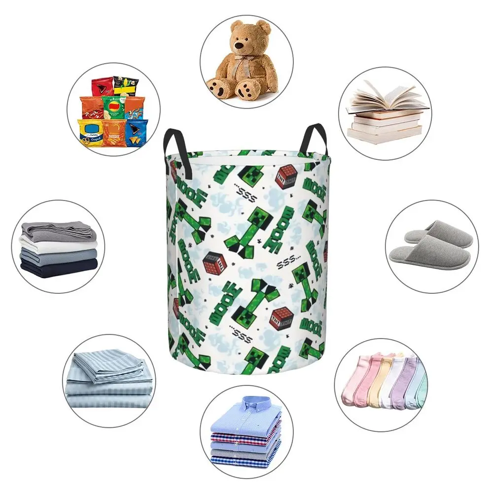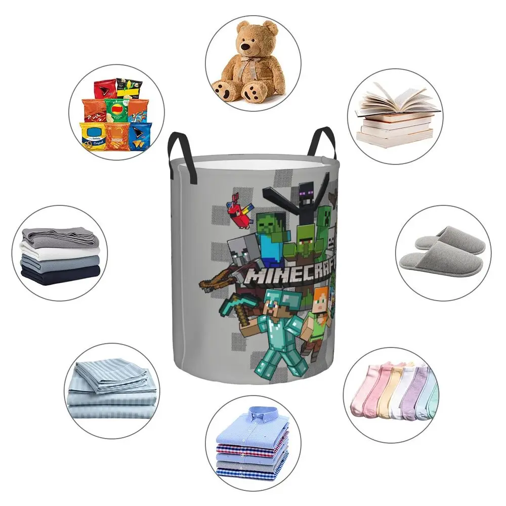Custom Anime Game Mine C-Crafts Cartoon Laundry Hamper Large Clothes Storage Basket Toy Bin Organizer for Kids