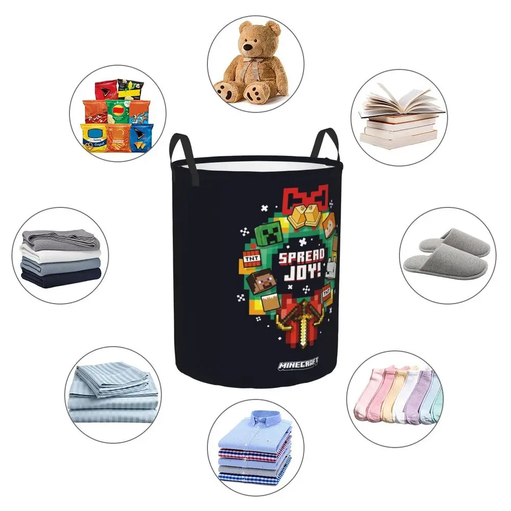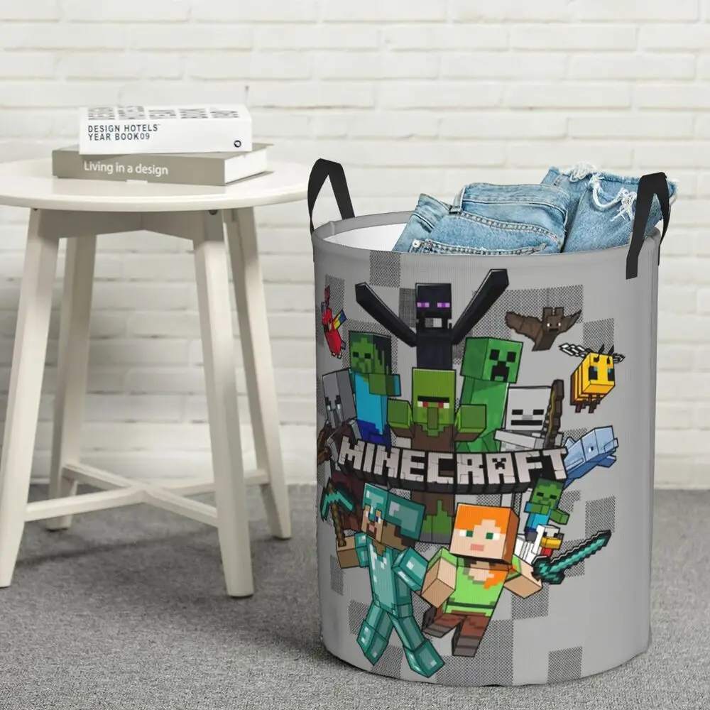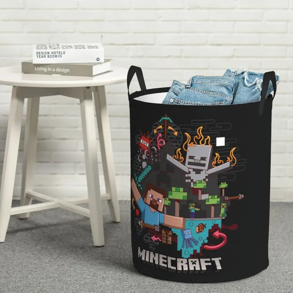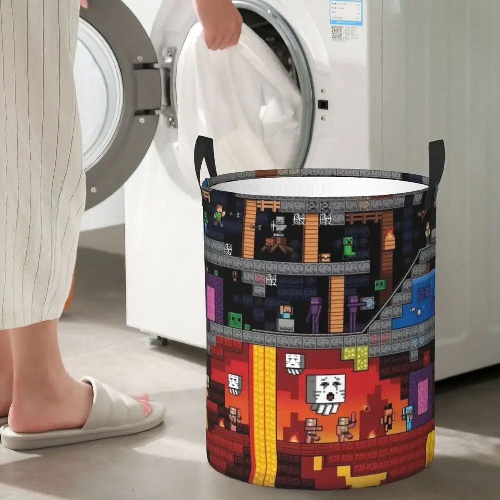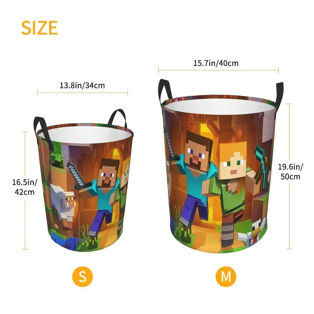 Custom Anime Game Mine C-Crafts Cartoon Laundry Hamper Large Clothes Storage Basket Toy Bin Organizer for Kids