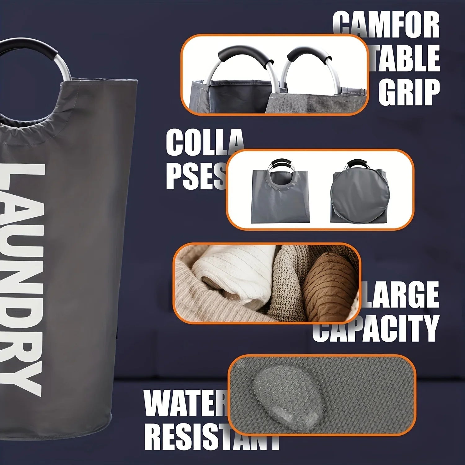 Extra-Large Waterproof Laundry Basket with Padded Handle - Foldable, Multi-Purpose Storage for Bathroom, Laundry Room, Balcony