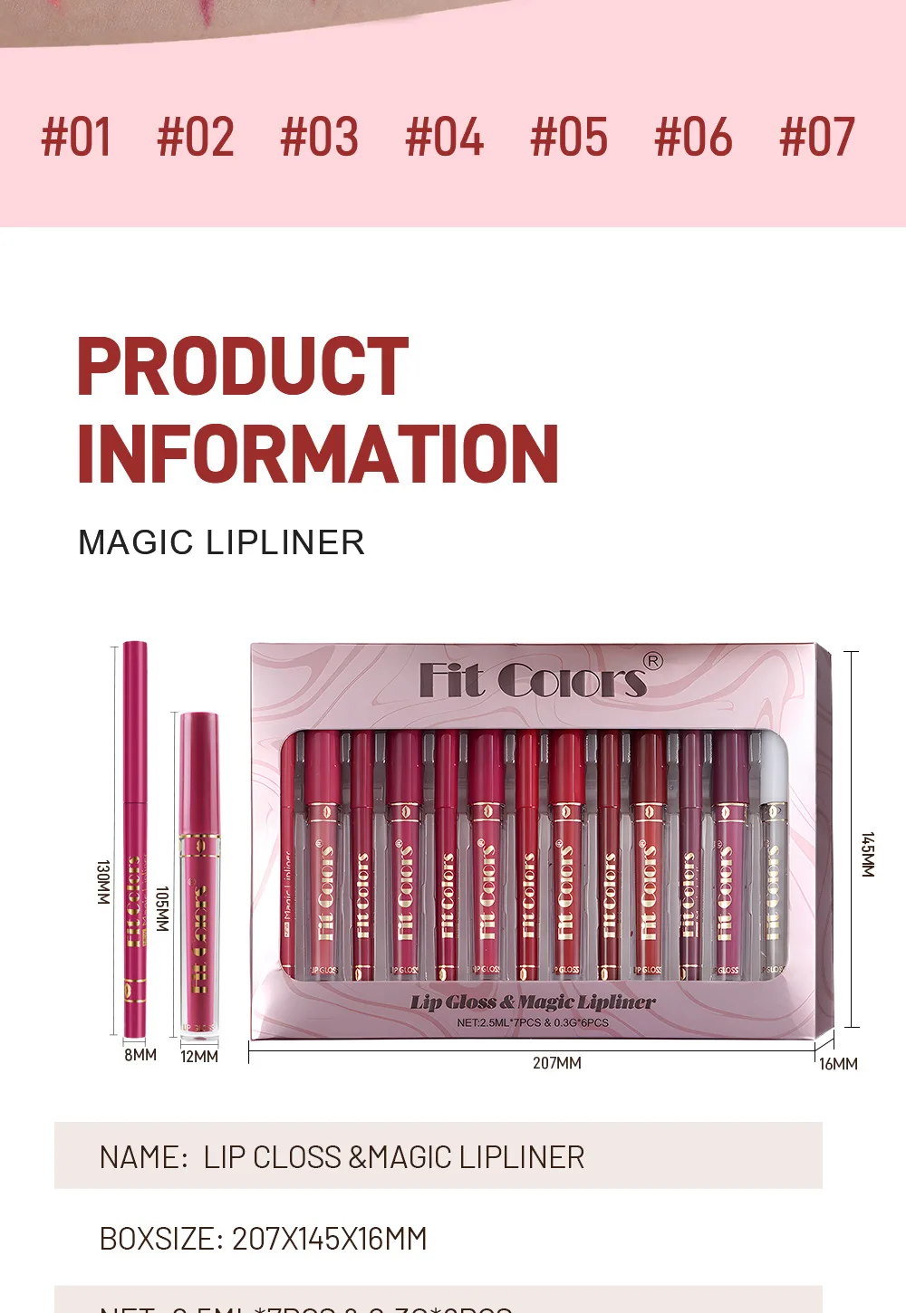 Fit Colors 6+7 Lip Liner Pencil Case Matte non-stick cup Hook Lip pencil is waterproof and does not easily decolor lip glaze