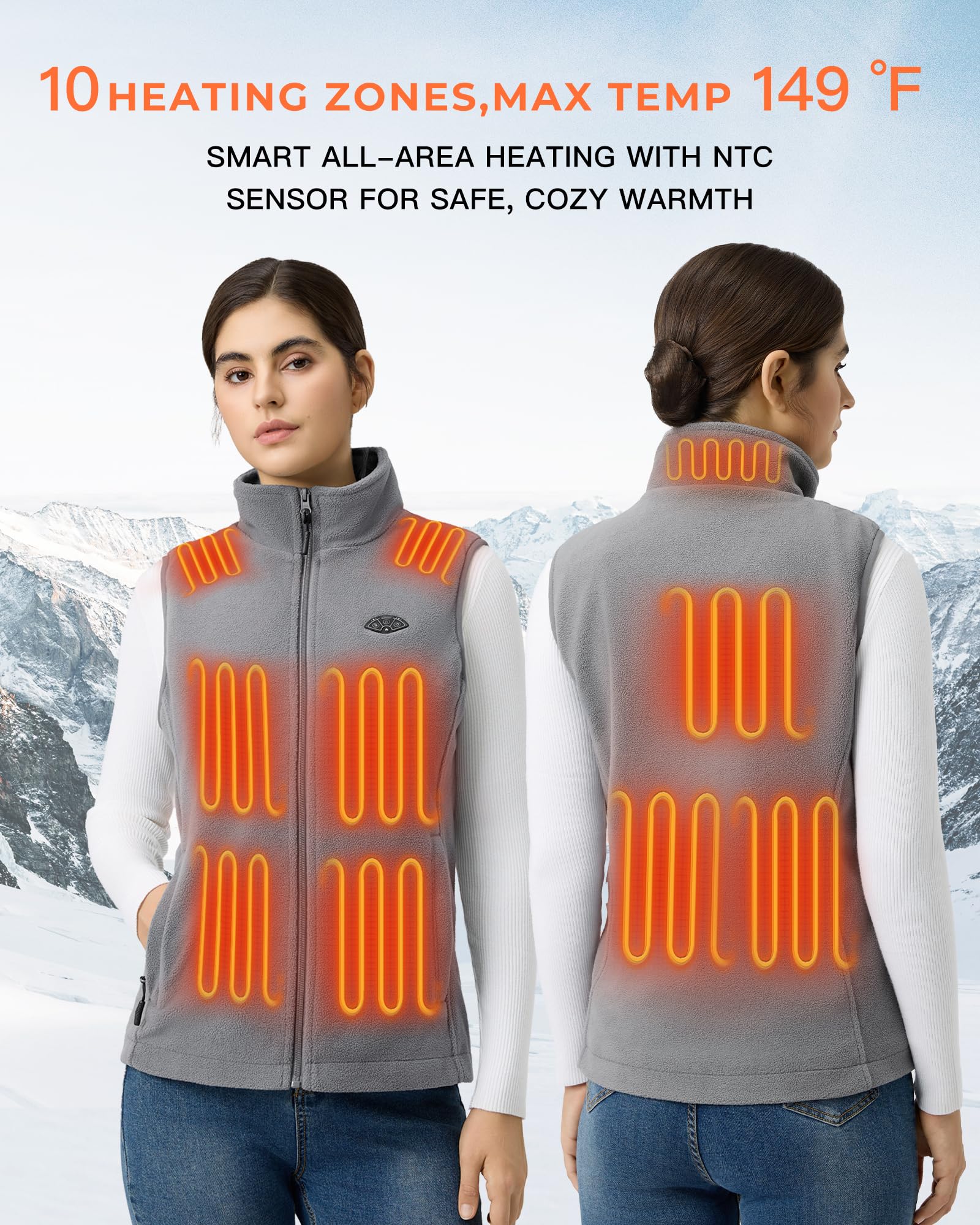 Fleece Women's Heated Vest with Battery Pack 16000mAh 7.4V, Heated Vest for Women with10-Heated Zones for Outdoor Work