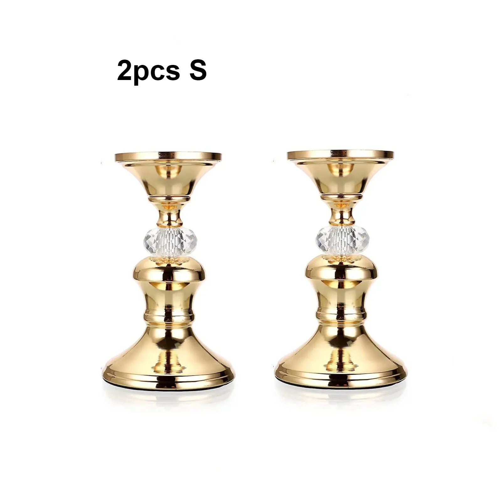 Gold Metal Pillar Candlestick Holders Vintage Pillar Candle Holders Elegant Metal Crystal Pillar Candle Stands