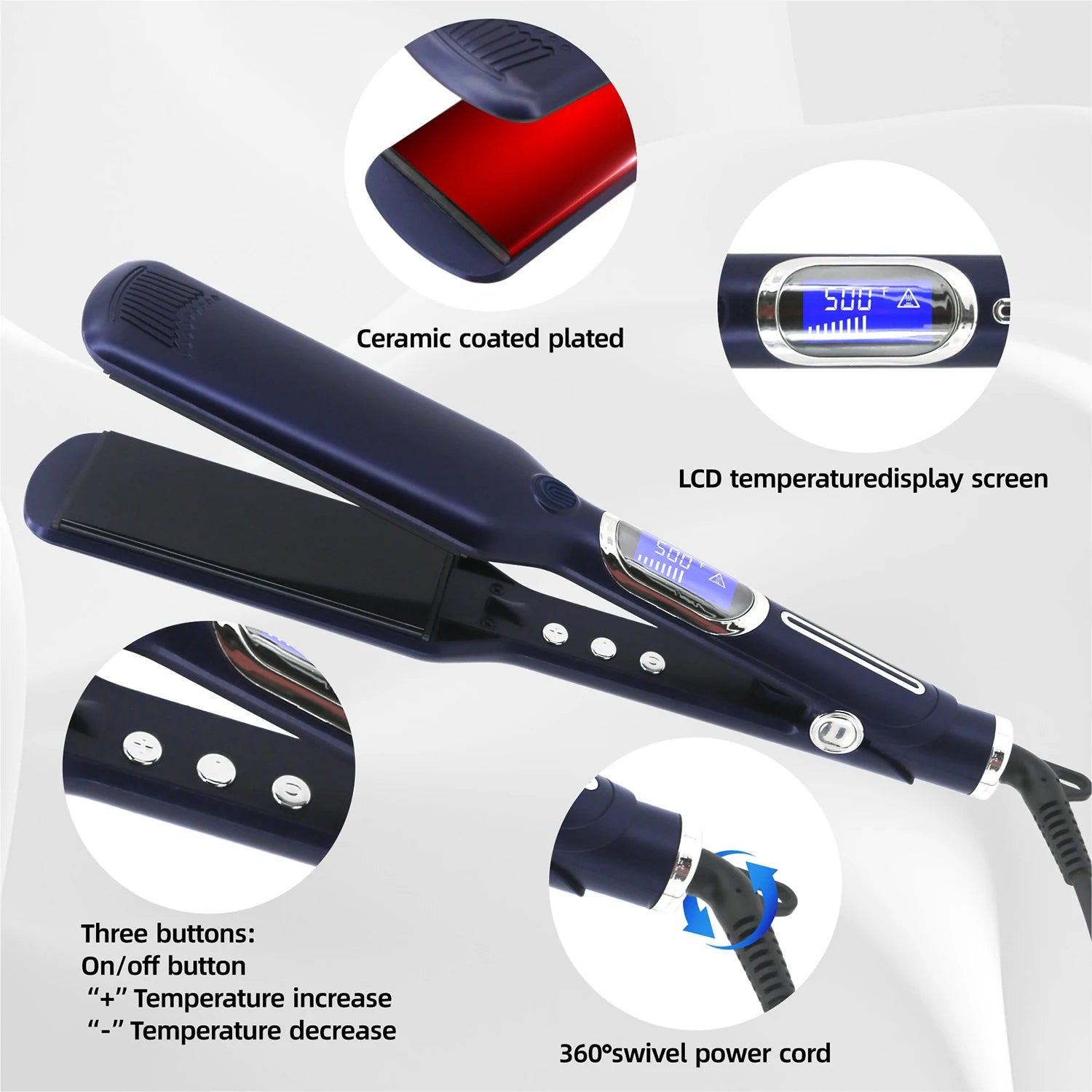 Hair Straightener Curler 500°F Professional Hair Flat Iron For Salon Styling Tools Keratin Treatment Dual Voltage LCD Display