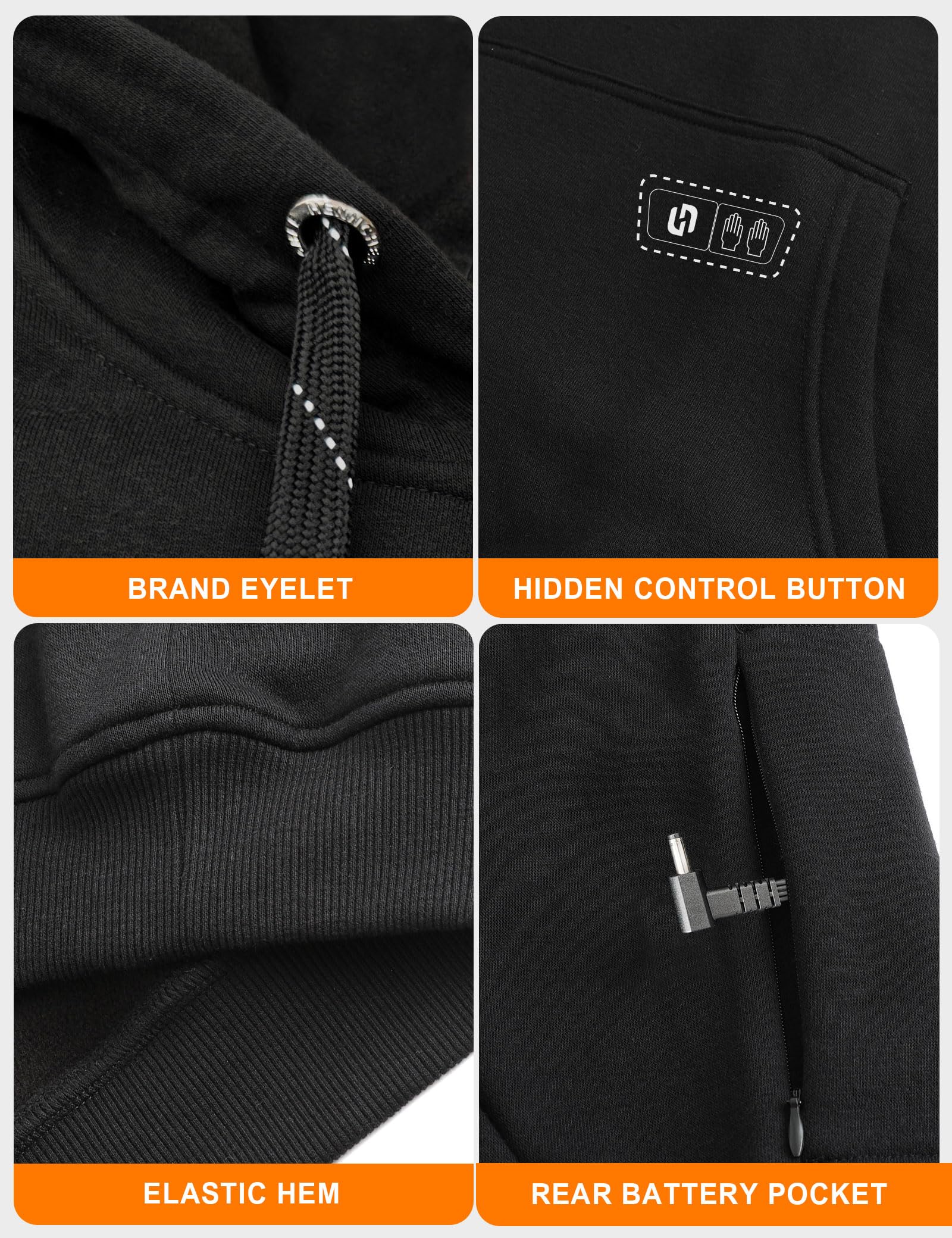 HENNCHEE Heated Hoodies for Men Women with Battery Pack, Heated Pullover Unisex Sweatshirt Heating Jacket
