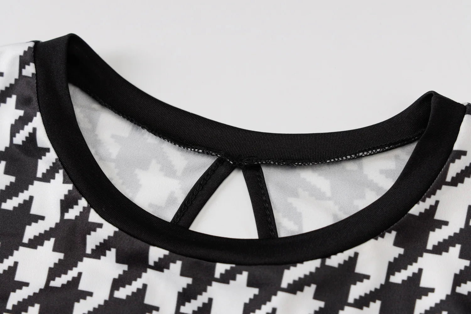 Houndstooth Print Women Long Sleeve Midi Dress Hollow Out Bodycon Sexy Streetwear 2022 Autumn Winter Club Elegant Slim