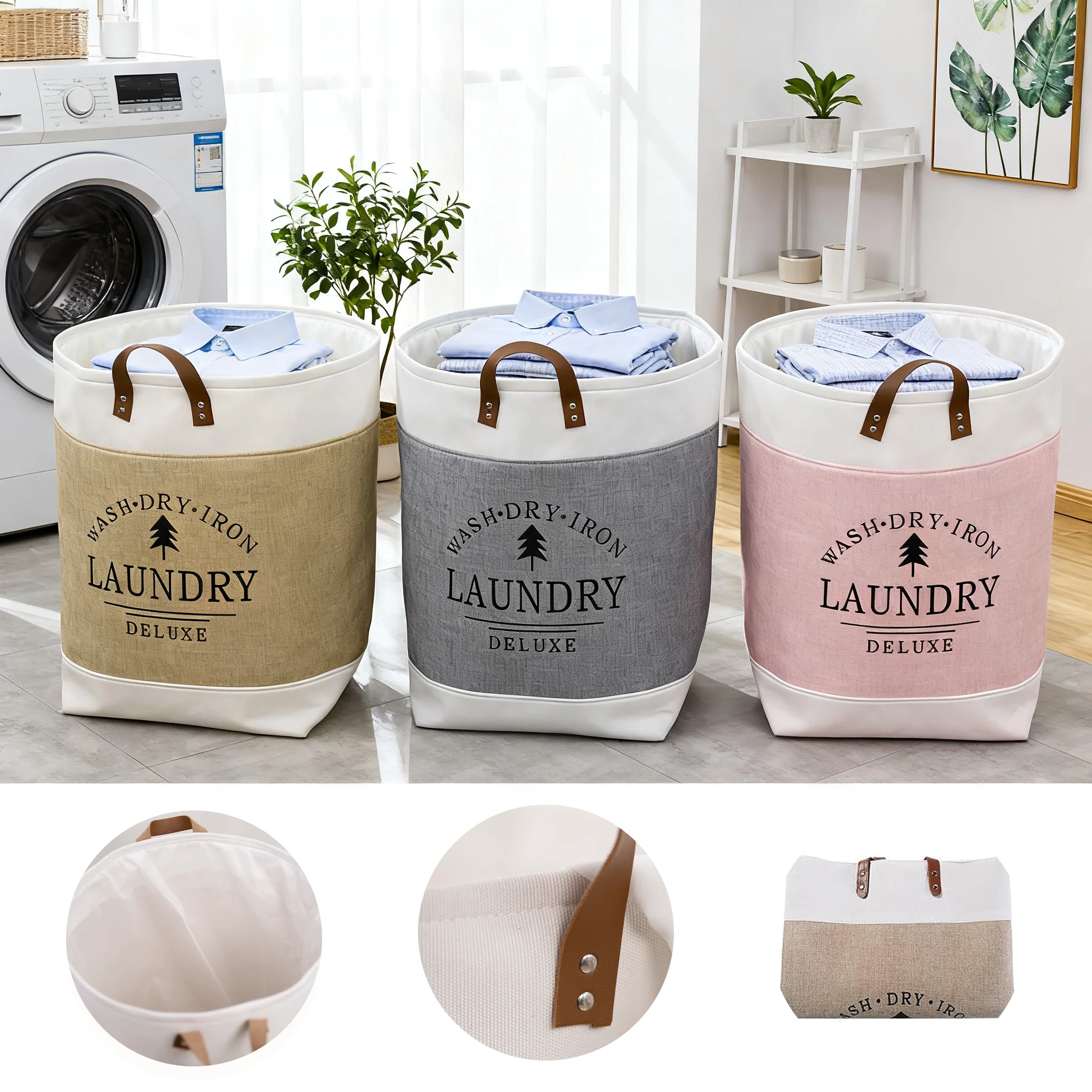 Household Laundry Basket Collapsible Waterproof Clothes Baskets with Handles Dirty Fabric Laundry Basket for Bedroom Balcony