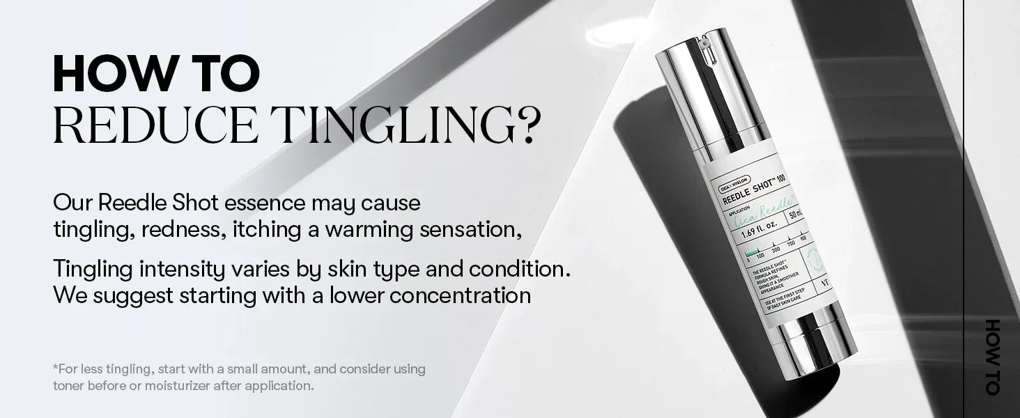 ●While using our Reedle Shot essence, you may feel a slight tingling sensation, which is completely normal and indicates skin improvement.Rest assured, it contains 'cica reedle' for soothing benefits.To minimize the tingling, try applying toner after cleansing, then gently tapping on the essence.