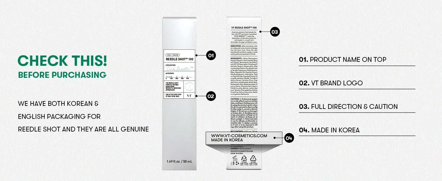 ● [Exosome Skin Care Booster] On a cleansed face, use Reedle Shot first, and then followed by VT’s essence or cream.The Reedle Shot will enhance the absorption of nutrients, ensuring a more nourished and vibrant complexion.
