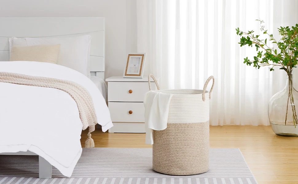 Large Size Laundry Basket,High Braided Rope Storage Basket,Suitable for Living Room、Bathroom、Bedroom Blanket、Toy、Dirty laundry