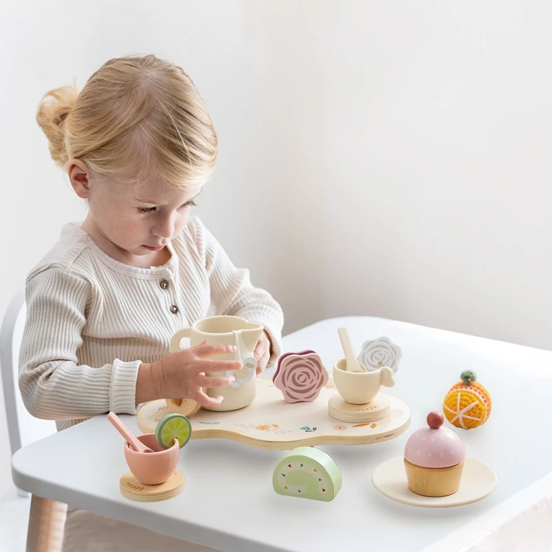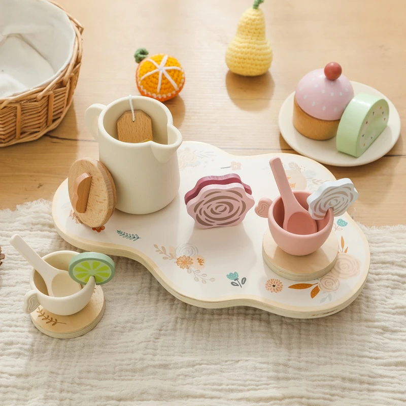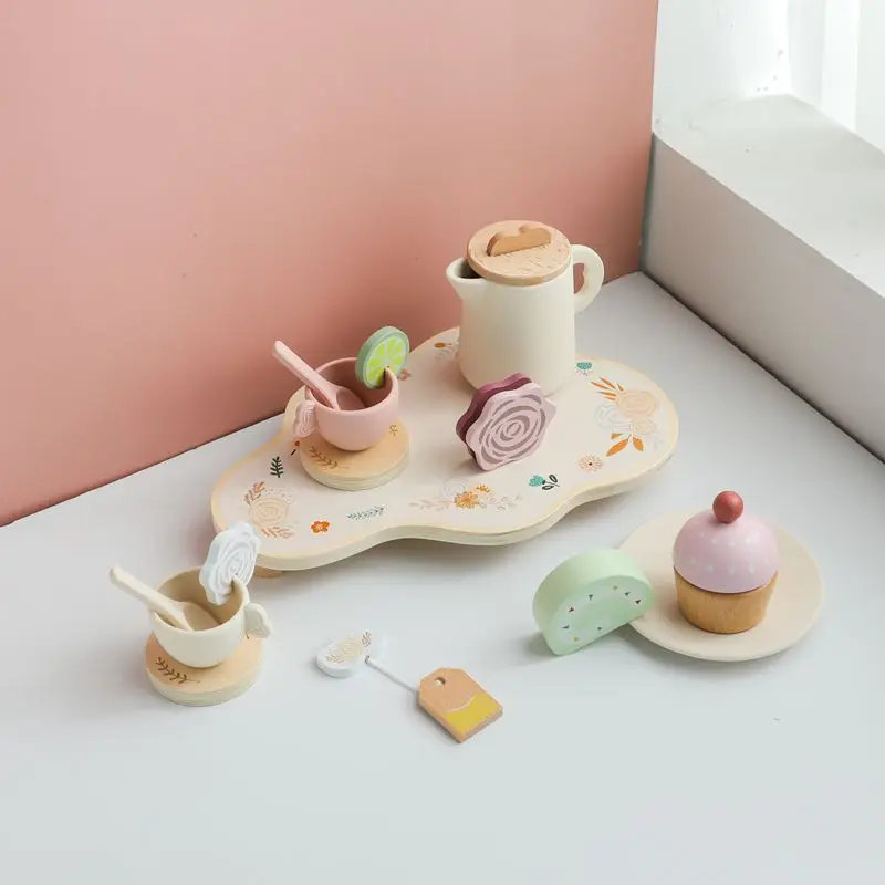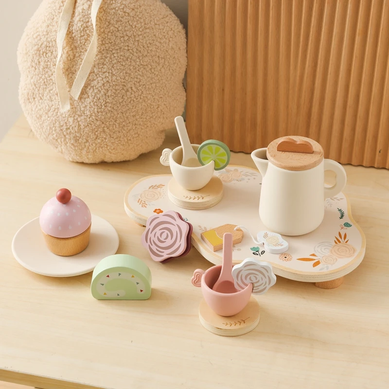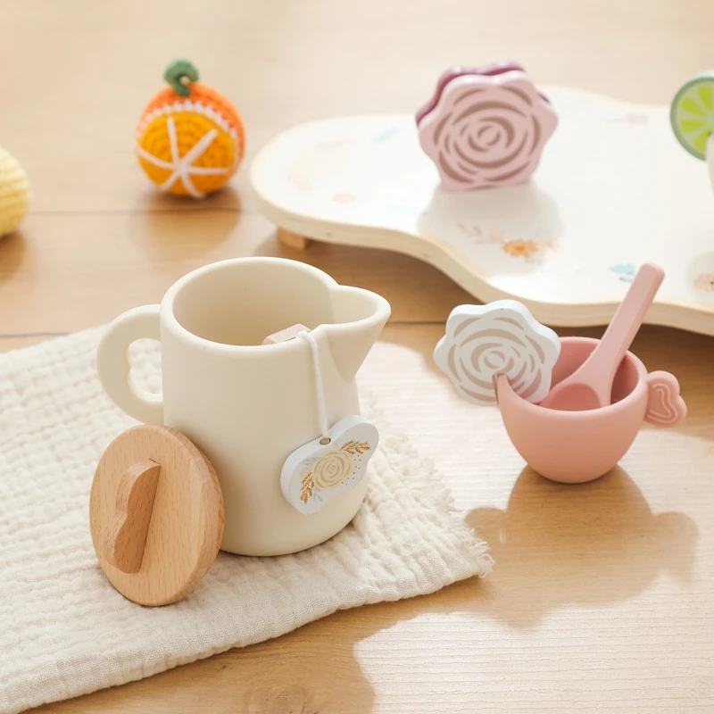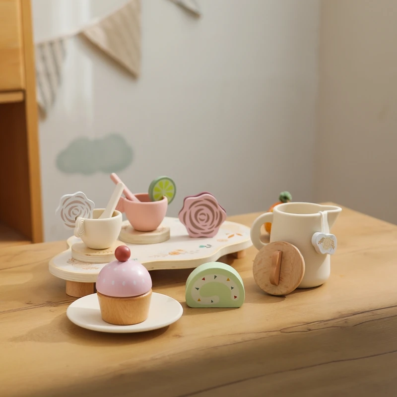 Let's Make Afternoon Tea Set Wooden Pretend Play Toys Kitchen Cake Role Play Parent-child Toys Girls Silicone Tea Cup Toys Girls
