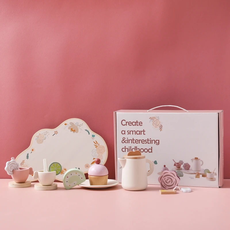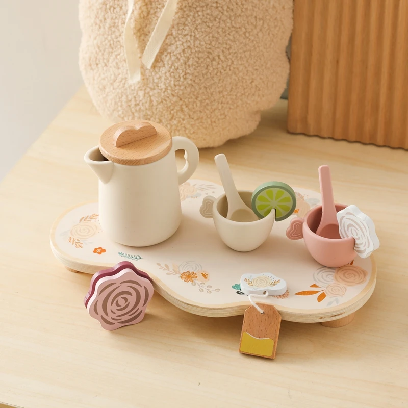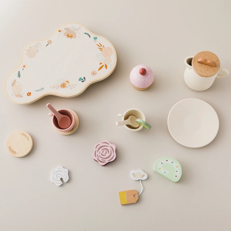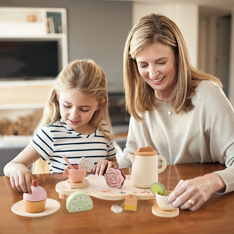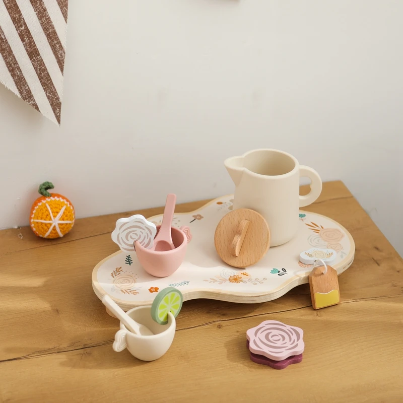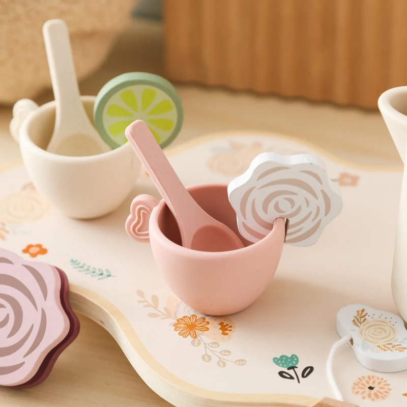 Let's Make Afternoon Tea Set Wooden Pretend Play Toys Kitchen Cake Role Play Parent-child Toys Girls Silicone Tea Cup Toys Girls