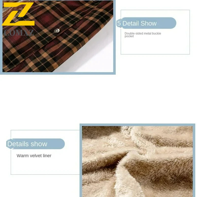 Mens Cotton Jacket Autumn Winter 2025 Check Print Warm Casual Business Office Lapel Coat Man Middle-aged Elderly Cotton Clothes