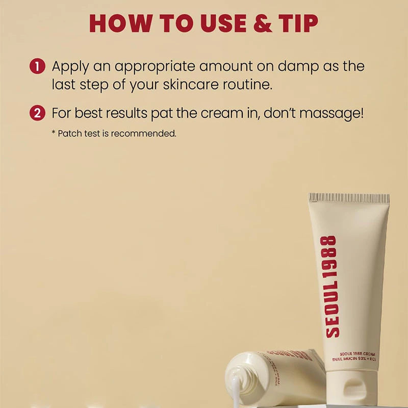 ✔ 50ml Seoul 1988 Fermented Rice Cream – Nourishes with fermented rice extract for bright, smooth skin.