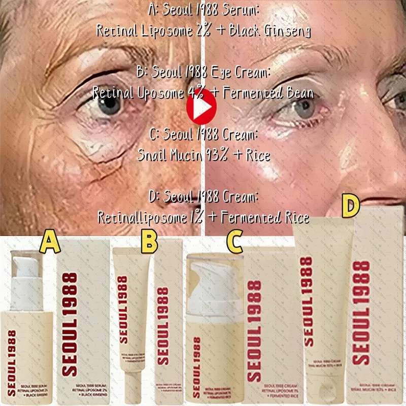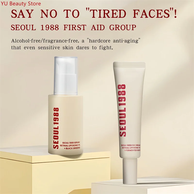 SEOUL 1988 Vitamin C Wrinkle Care 4% Retinol Ginseng Serum Lighten Fine Lines Firming Eye Cream Moisturizing Korean Skincare Set