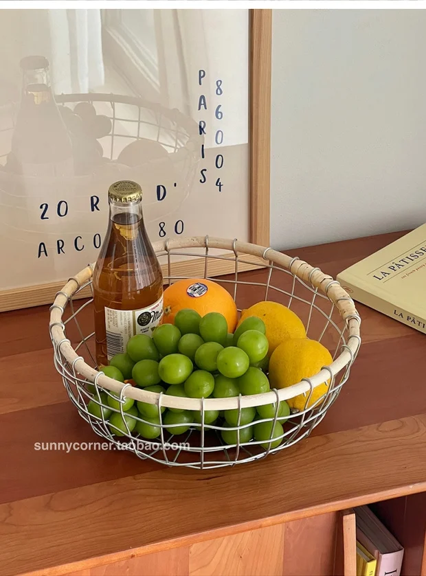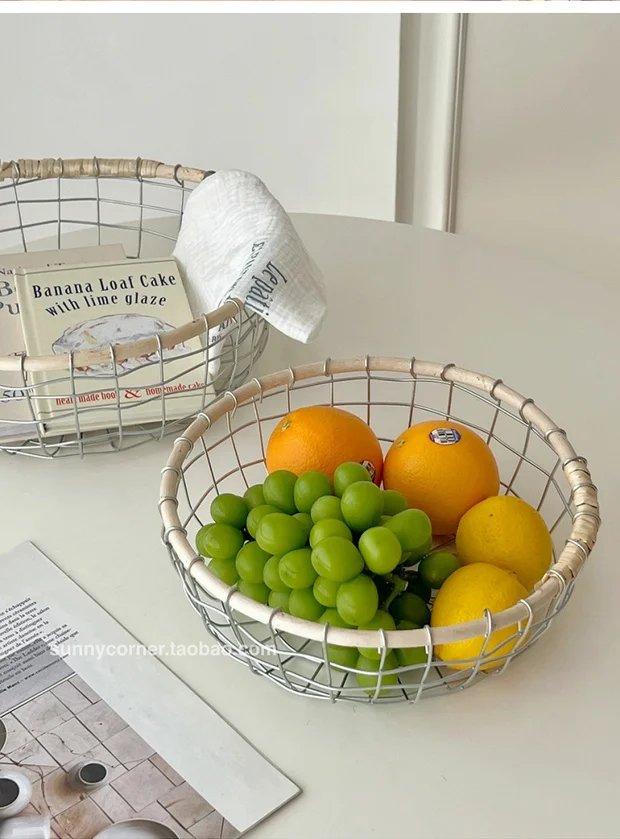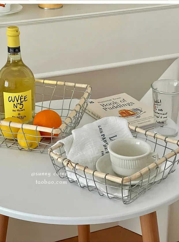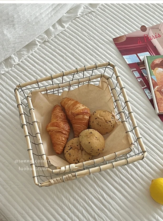 Woven Iron Art Storage Basket Hollow out Fruit Sna Bread Desktop Organizer Basket Casual Chic Metal Storage Caddy