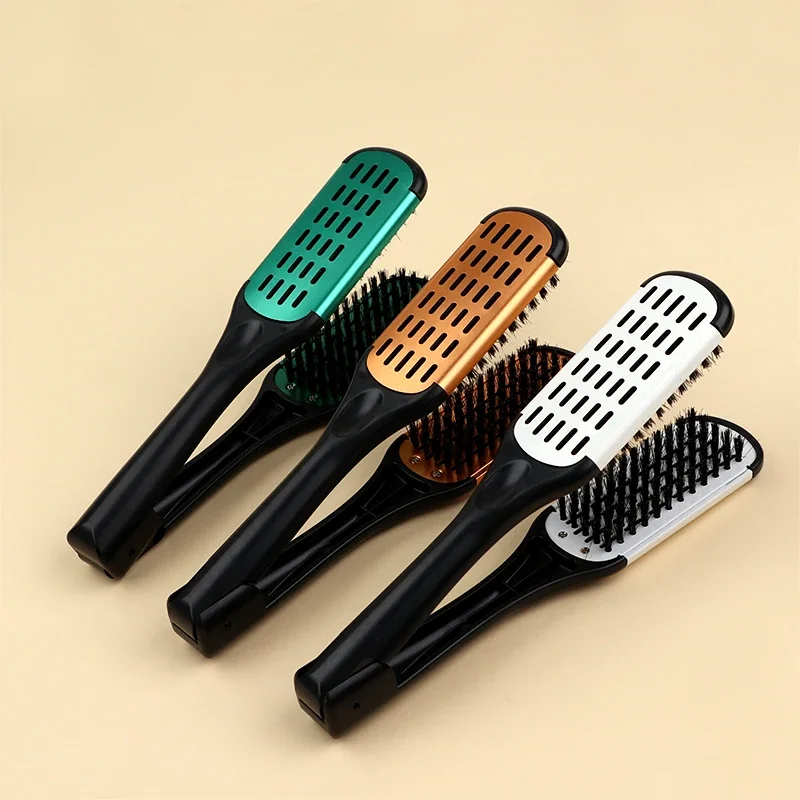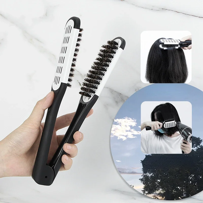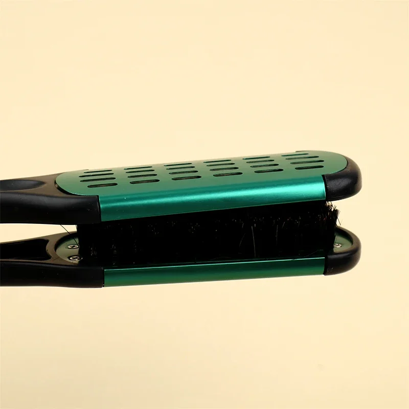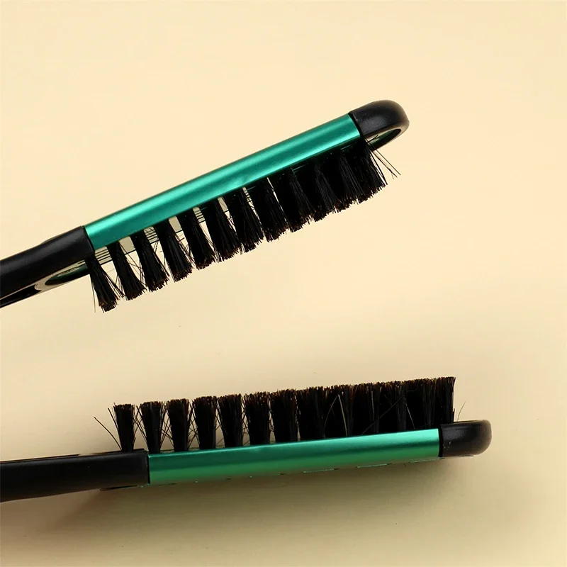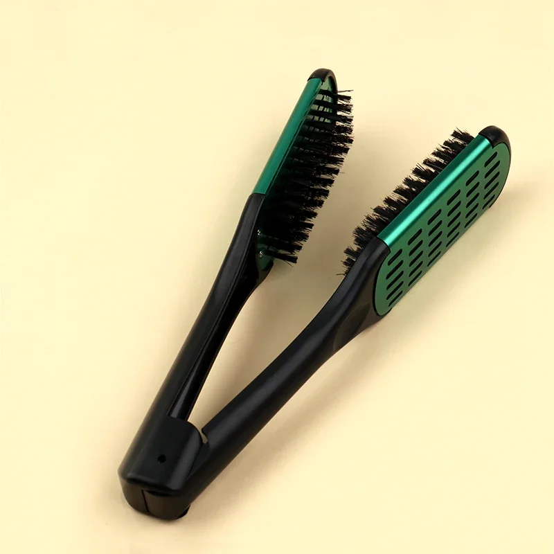 YUNTES Pro Hairdressing Straightener Nylon Hair Straightening Double Brushes V Shape Comb Clamp Not Hurt Styling Tools DIY Home